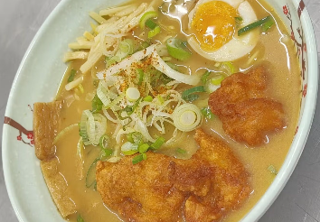 Ramen con base de pollo y miso con trocitos de Karaage.