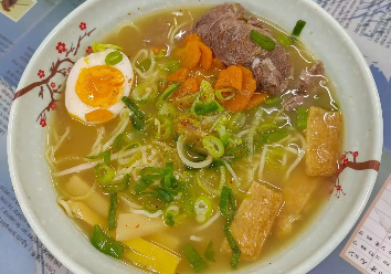 Sopa de fideos gruesos con caldo de ternera picante.